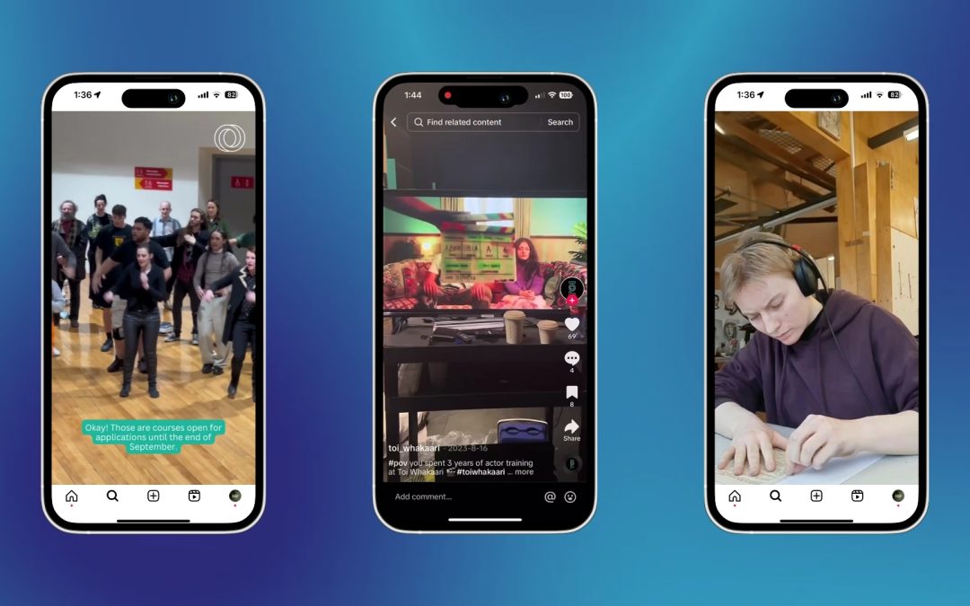 Social Good were pleased to work with Toi Whakaari in 2023 to support their recruitment campaign for 2024. We developed a social media plan with a focus on the different qualifications.  Alongside the core course content, we proposed a student-led content campaign, where students would create videos sharing their experiences at Toi Whakaari. This proved to be a great success! The results showed a significant increase in views for Toi Whakaari’s reels on Instagram and their TikToks. We also ran a paid campaign focused on generating leads. This was successful with hundreds of new potential students expressing interest.