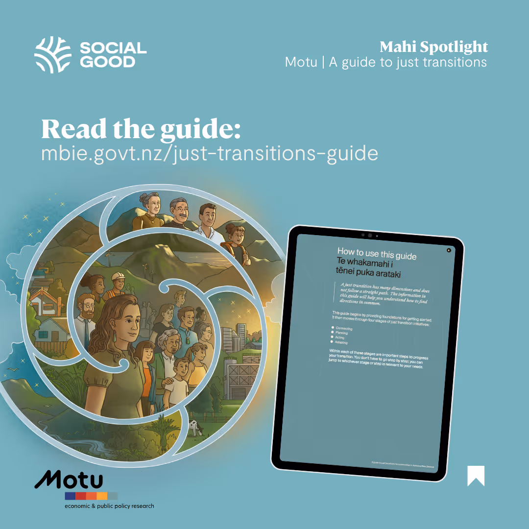 A guide to just transitions helps communities confront the major environmental and social channels Aotearoa New Zealand is facing. The guide was developed through an inclusive process. The project team included over 25 contributors and got broader input through an international literature review, a user needs survey, five dialogue meetings with experts and practitioners, and external peer review.