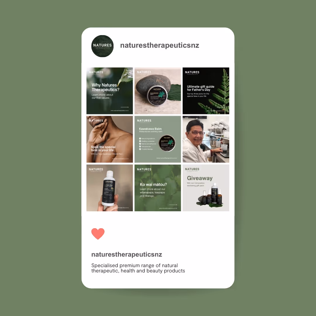 Social Good created a digital strategy, did content planning, content creation and partnered with Squid to deliver a growth and sales campaign. An important kaupapa for us is delivering training and support so pakihi like this can be equipped with all the tools and knowledge they need to keep the marketing going once we’ve finished our mahi together. We delivered training to Natures Therapeutics and we can already see them putting into practice the things we did together!